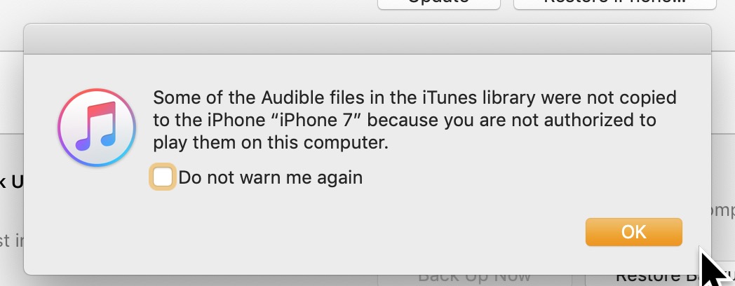 Some of the Audible files in the iTunes library were not copied to the iPhone iphone because you are no authorized to play them on this computer I tried to deauthorize my account. Once this is done click on Books in the left sidebar menu.
