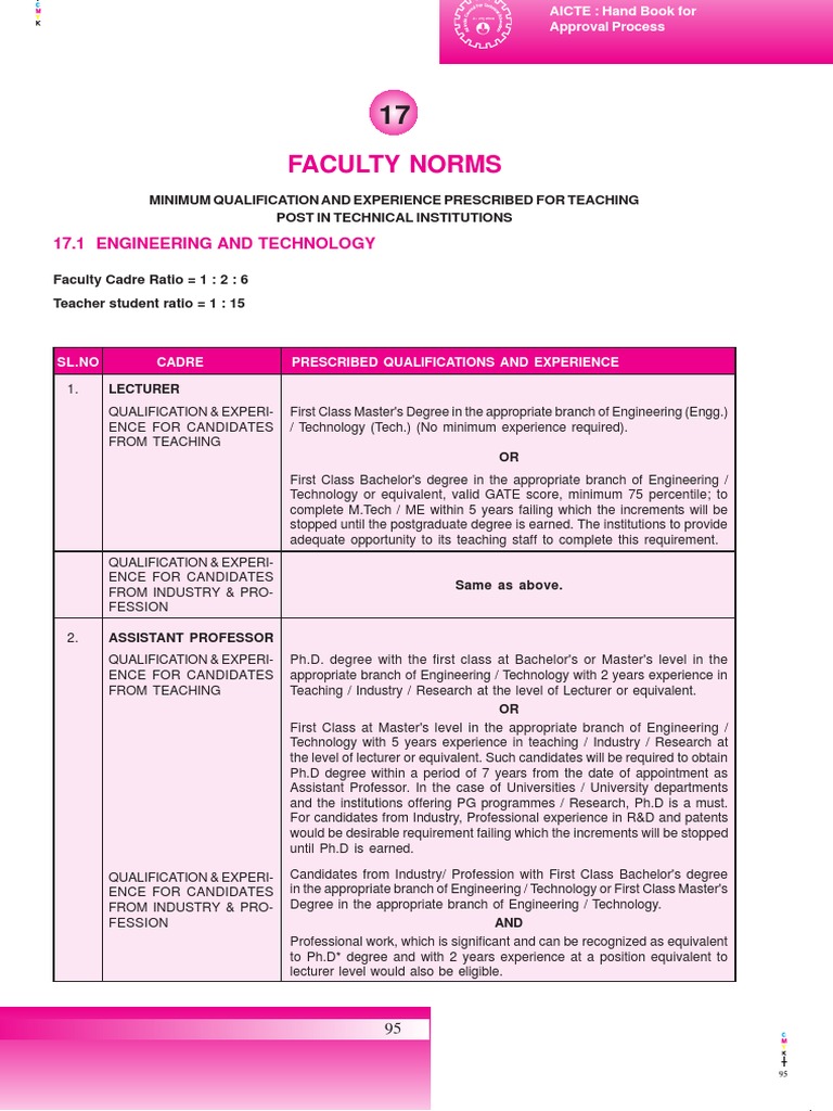 Faculty Norms As Per Aicte Bachelor S Degree Doctor Of Philosophy